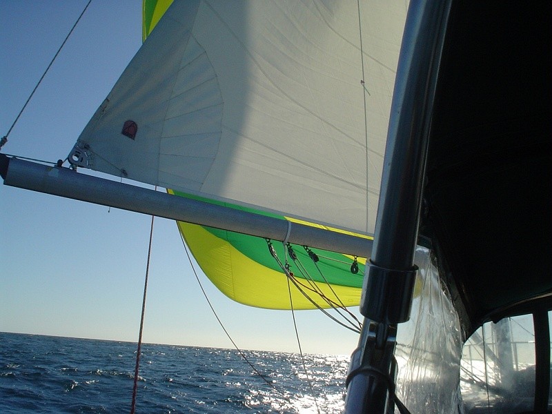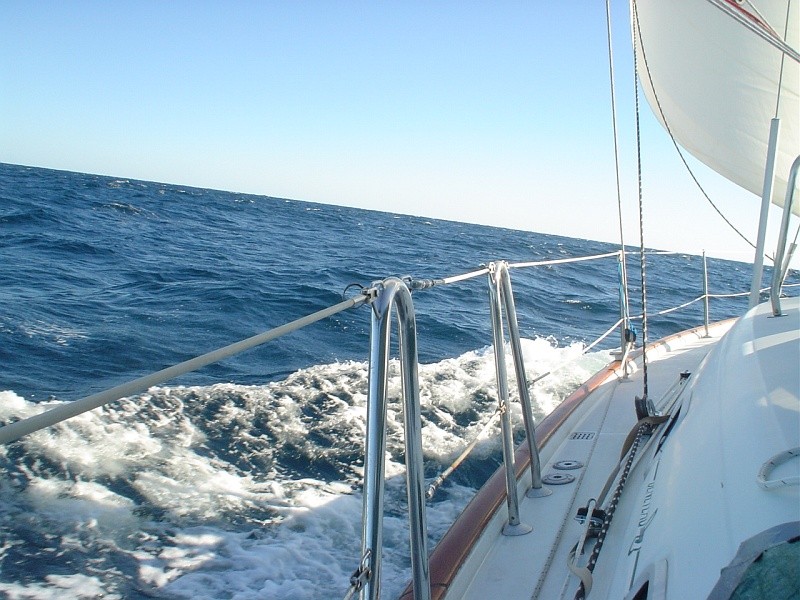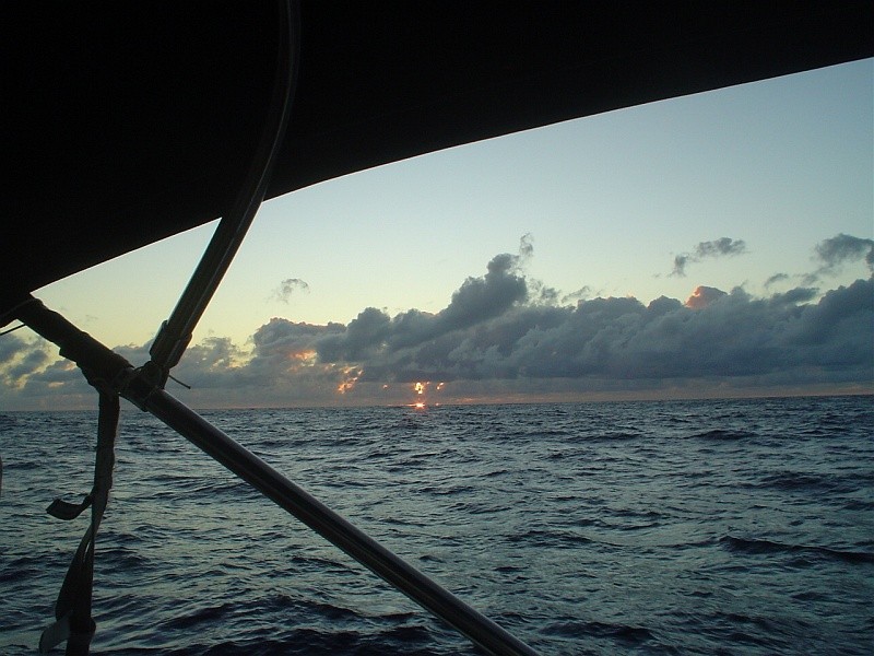 From ship's log 10/10/08 at 0610; "Smoking Ass" w full main & jib w autopilot vane steering. Another beauty of a night w 3/4 moon and tons of stars after it set.