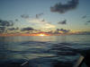 Sailing at sunset. SOG 7.0Kn, COG 198°M, TWS 12.2Kn, TWD 299°M - From ship's log at 2000; Motorsailed until 1550 then sailed until 1946, motorsailed until 2000. Now sailing nicely. Several sailboats that were in Bermuda remained in sight during daylight.